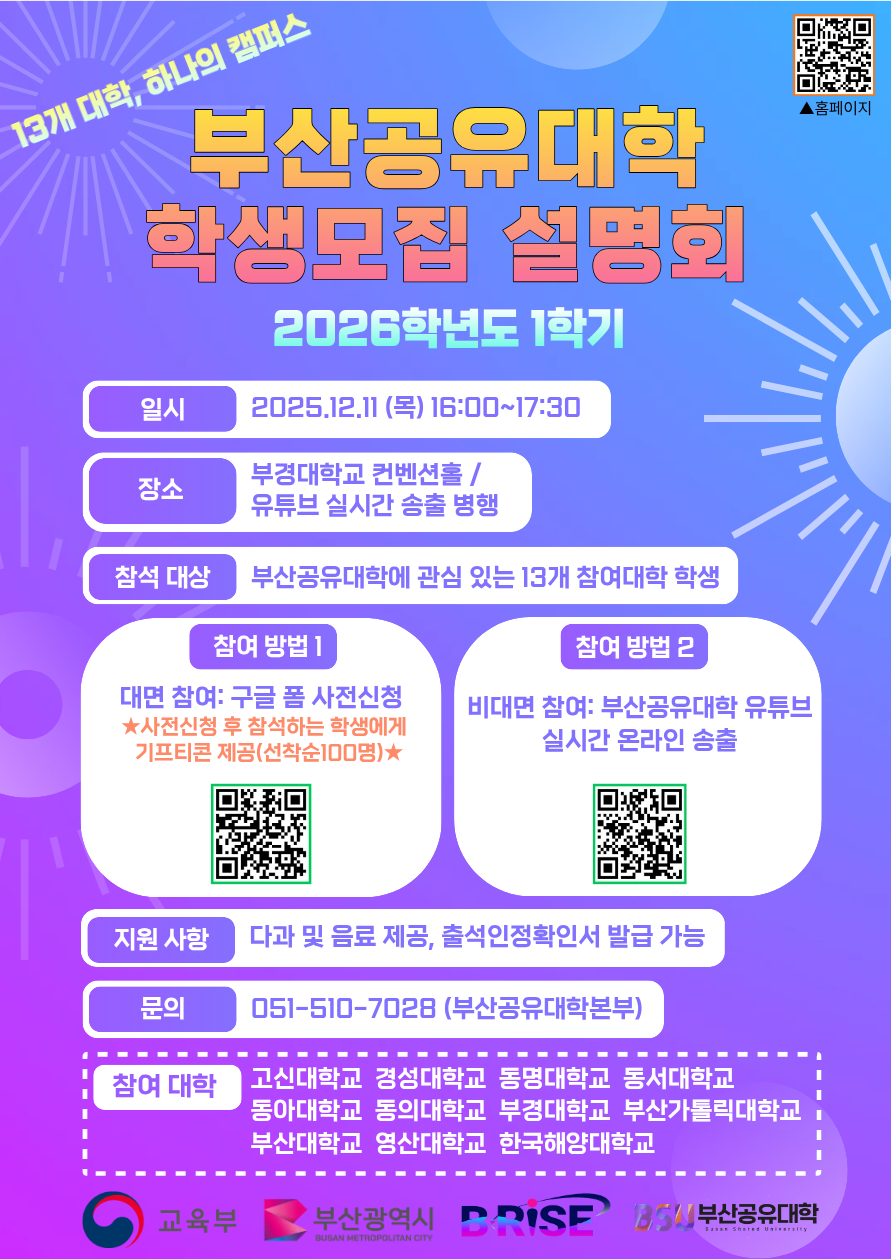 부산공유대학 학생 모집을 위한 설명회를 진행하고자 하오니,